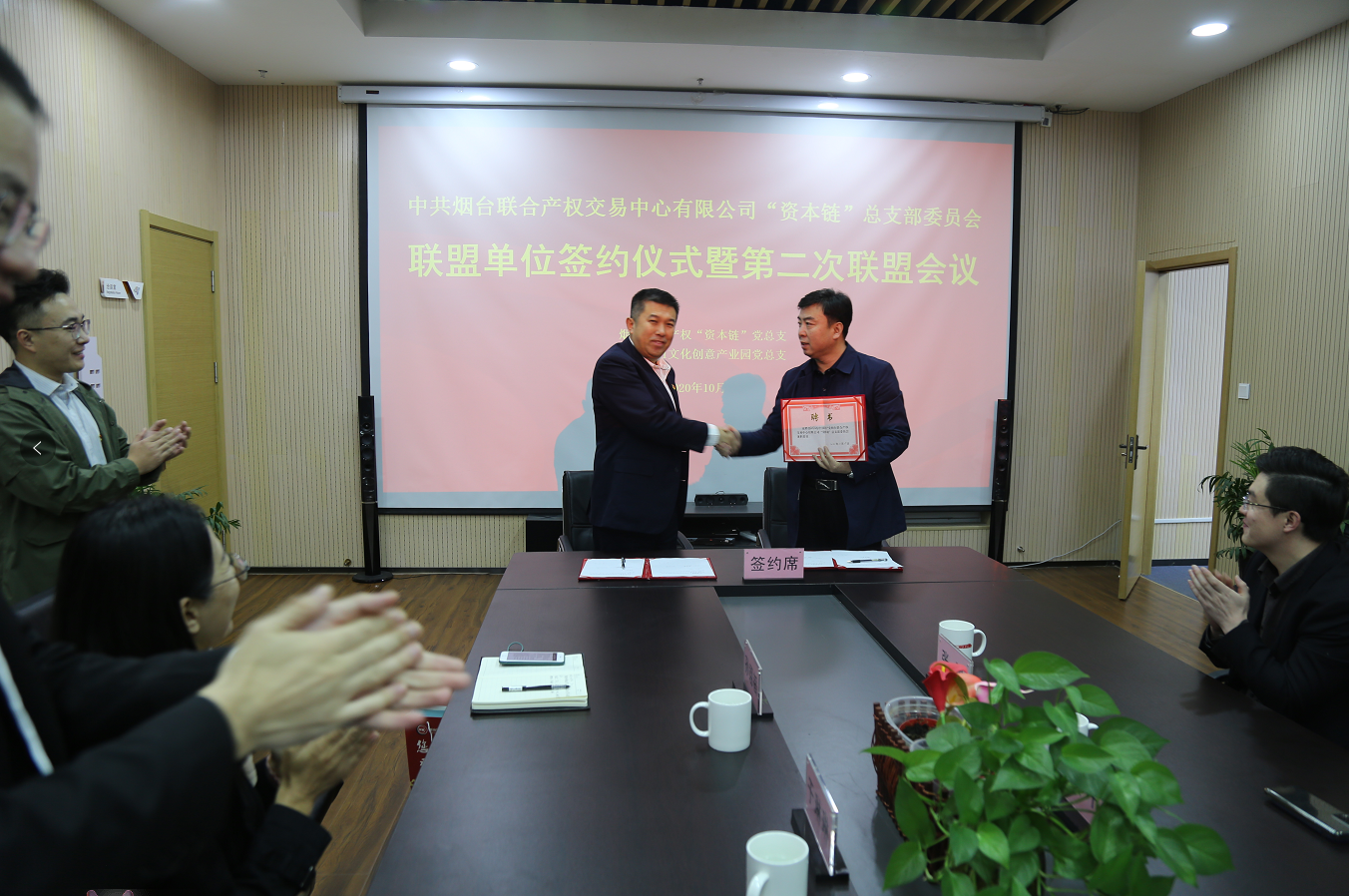 “黨是最好的信仰,建是最大的優(yōu)勢”,懸掛著的各具特色的黨建標語,成為了煙臺1861文化創(chuàng)意產(chǎn)業(yè)園黨建文化的最好詮釋。2020年10月29日,迎著晨曦踏著朝陽,聯(lián)合產(chǎn)權(quán)“資本鏈黨總支”會同聯(lián)盟單位煙臺萊山建行黨總支共同來到1861產(chǎn)業(yè)園召開聯(lián)盟單位簽約儀式暨第二次聯(lián)盟會議。簽約儀式上,聯(lián)合產(chǎn)權(quán)黨支部書記初志杰代表“資本鏈黨總支”同1861文化創(chuàng)意產(chǎn)業(yè)園黨總支簽訂聯(lián)盟協(xié)議,并為園區(qū)黨總支書記張儉凱同志頒發(fā)了兼職委員聘書。