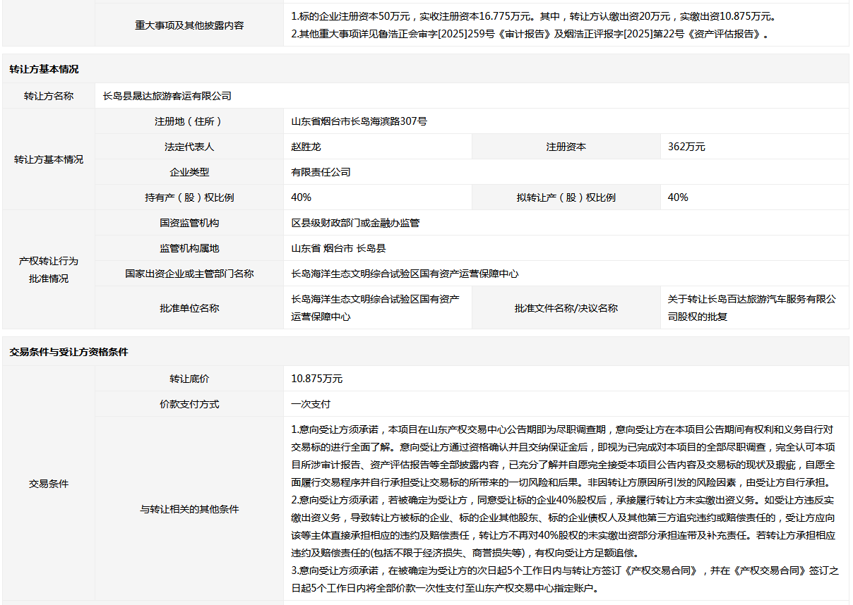 轉(zhuǎn)讓方:長島縣晟達旅游客運有限公司