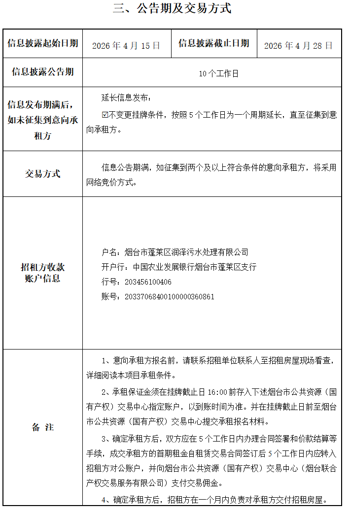 掛牌起止日期:2026年4月15日-2026年4月28日